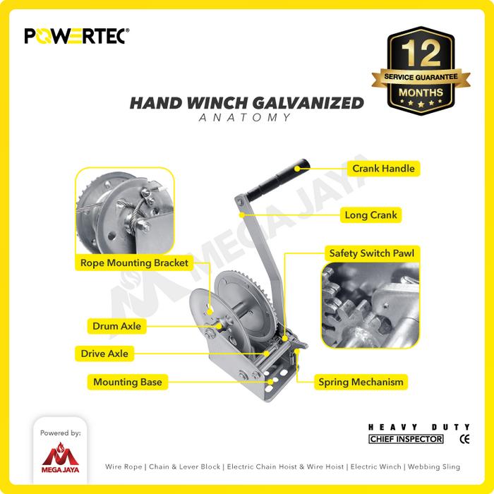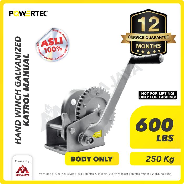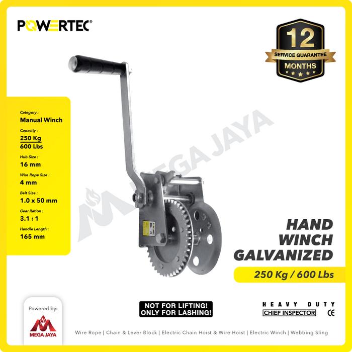 POWERTEC Hand Winch / Boat Winch / Katrol Manual 600lbs / 250Kg Galv