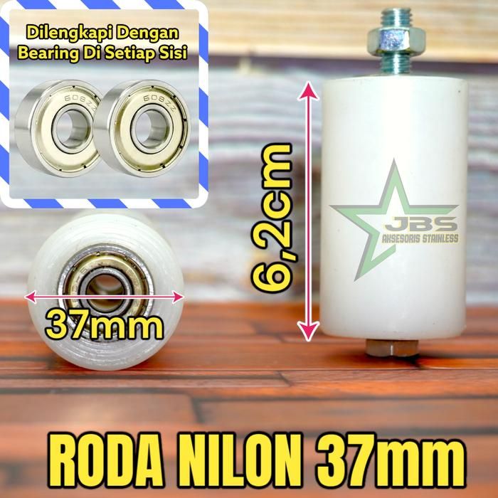 Roda Nilon 37mm + 2 Bering pintu pagar Stainless & Besi