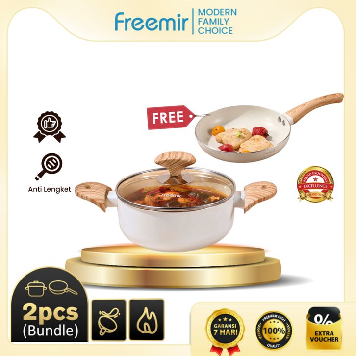 SPECIAL Freemir Wajan Panci Set Wajan 20 Cm Dan Panci 18 Cm Anti Lengket