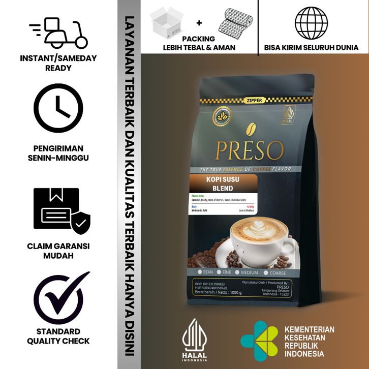 PRESO Biji Kopi Bubuk Kopi Susu Blend House Blend 40. Arabika 60. Robusta Coffee Beans Coffe Bean 1000gr