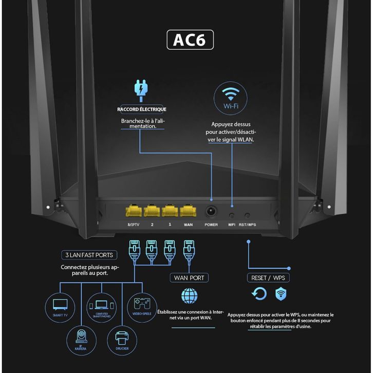 Tenda AC6 WiFi5 Cerdas Router High Speed AC1200 Wireless Dual-band with Smart APP Support Guest WiFi