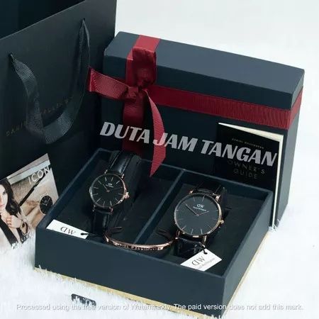 Paket Fullset Jam Tangan Couple Wanita / Pria Kulit Casual Terlaris type WD502