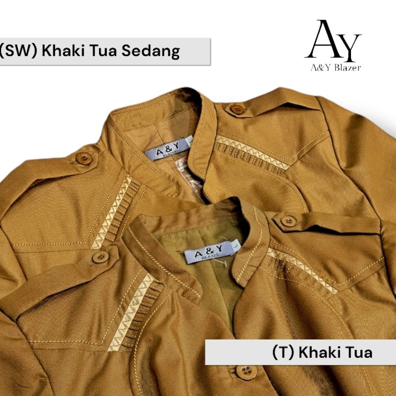 [01] A&Y Blazer Baju Seragam PDH Guru / PNS Wanita Warna Khaki Tua & Khaki Muda BAHAN TOYOBO PREMIUM | Seragam Kerja Di