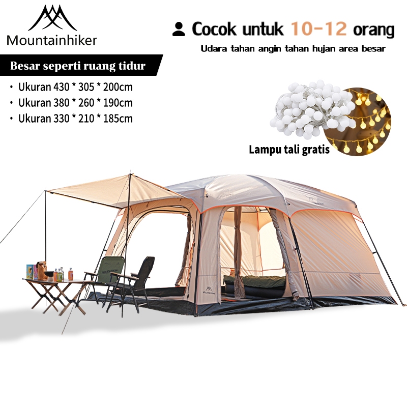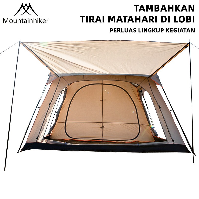 tenda camping Mountainhiker Tenda berkemah di luar ruangan dua kamar dan satu ruang tamu otomatis pembukaan cepat 4-6/5-