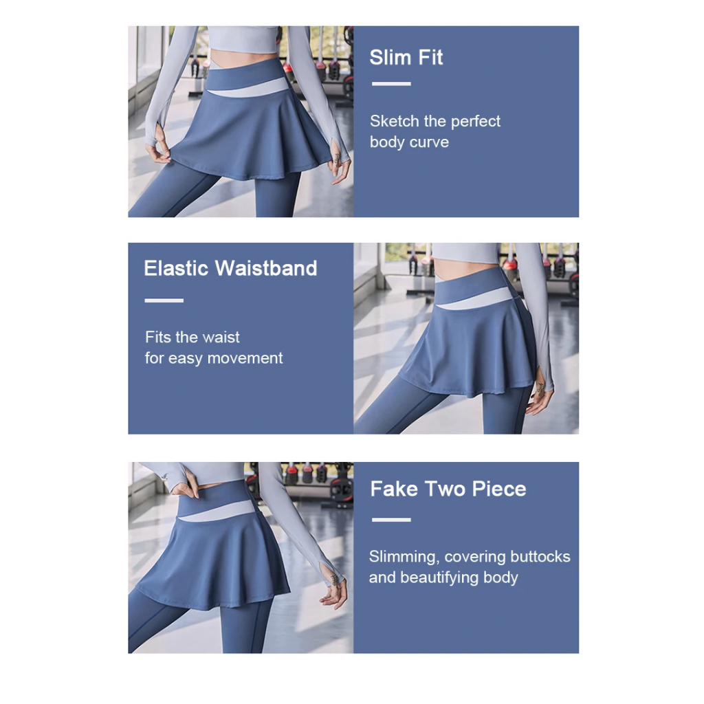 Set Olahraga Wanita – T-Shirt & Rok Legging Sporty | Baju Yoga, Latihan, Senam Stylish