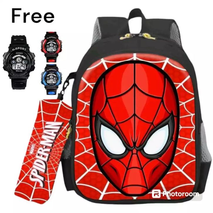 Tas Sekolah Anak Laki Laki TK SD Motif Karakter Spiderman Pkaet 3in1 Series Premium Tas Ransel Gendong Botol Jam Murah