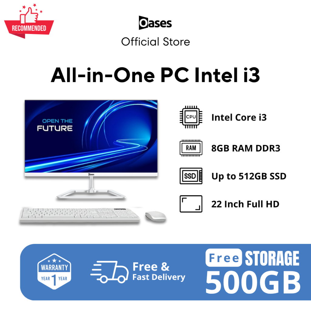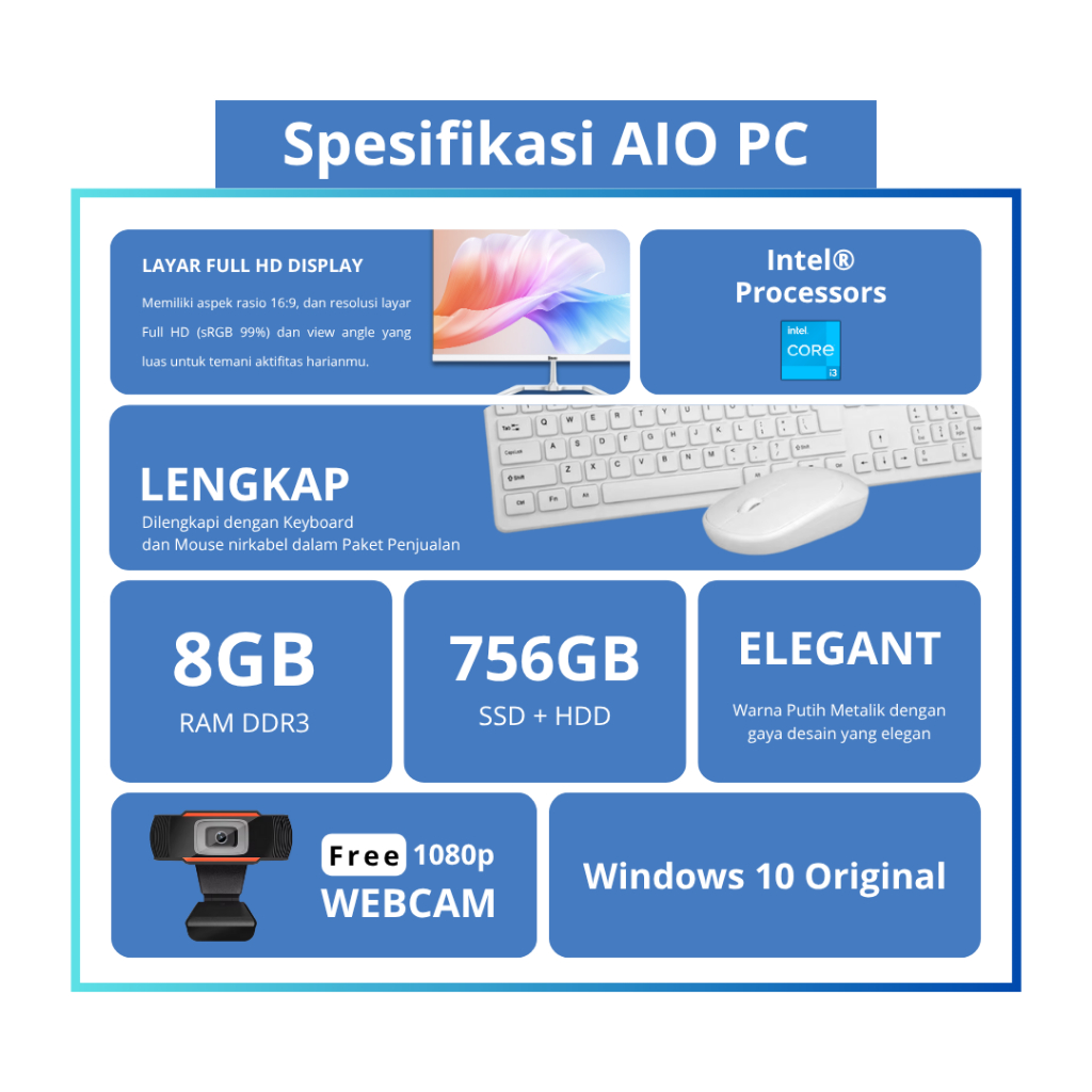Komputer AIO All-in-One PC Intel Core i3 8GB DDR3 SSD 128/256GB HDD 500GB Layar 19 22 Inch Windows 10