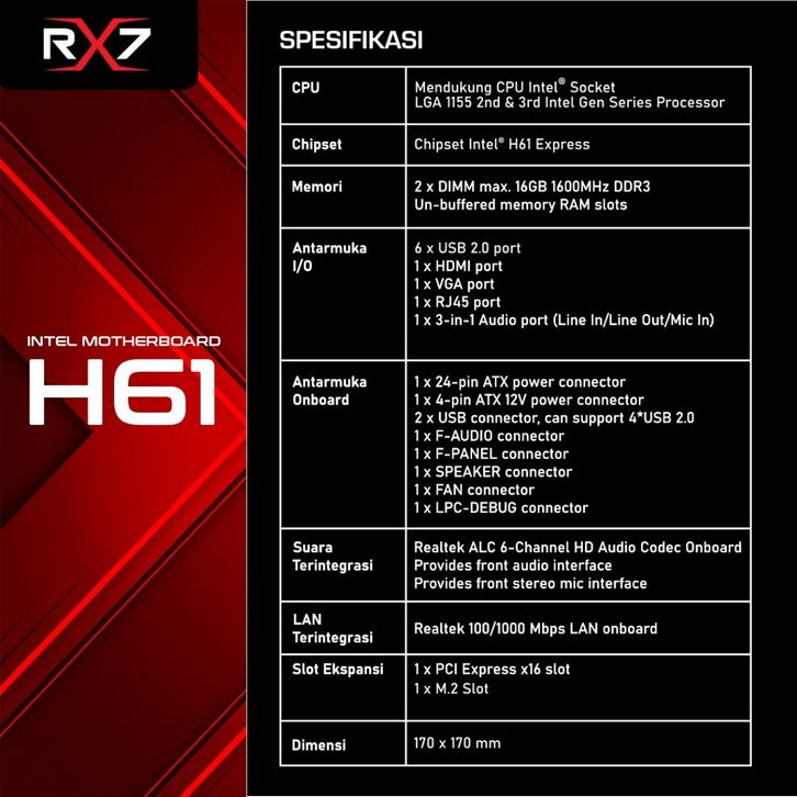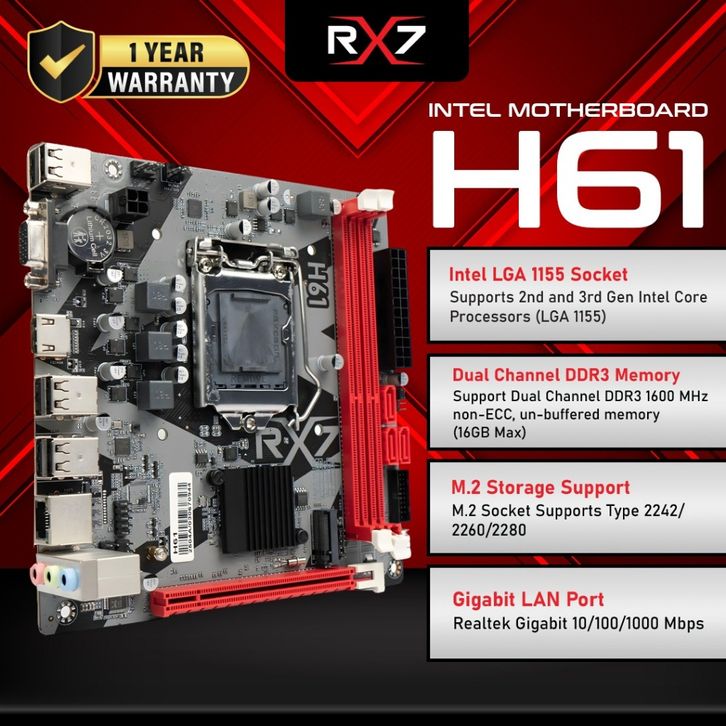 MOTHERBOARD RX7 H61 LGA 1155 DDR3 H61 MAINBOARD SUPPORT NVME