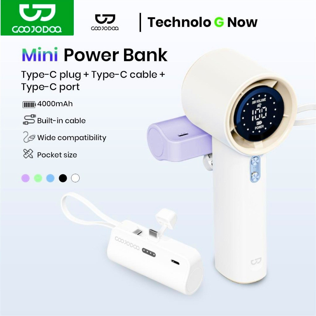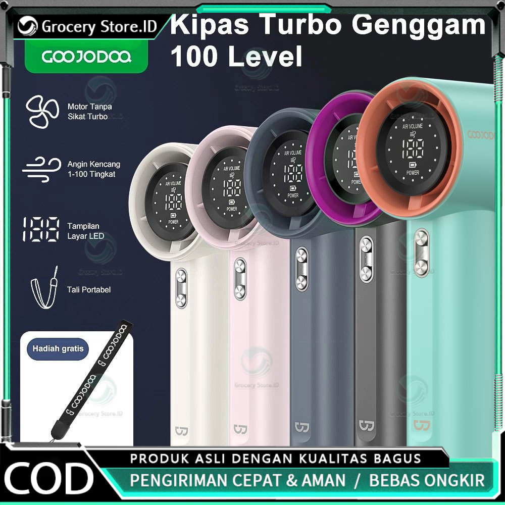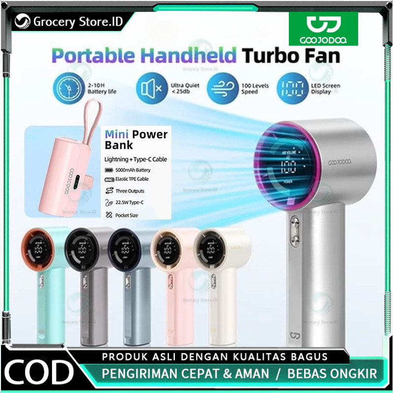 GOOJODOQ High-speed kipas +MINI powerbank SET 100 Gear Wind kipas angin Digital Display Adjustable Turbo kipas tangan Portable Digital Display Adjustable Turbo kipas