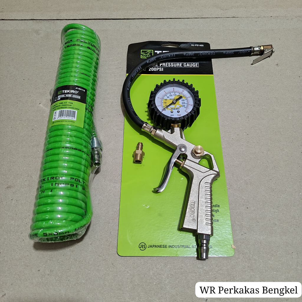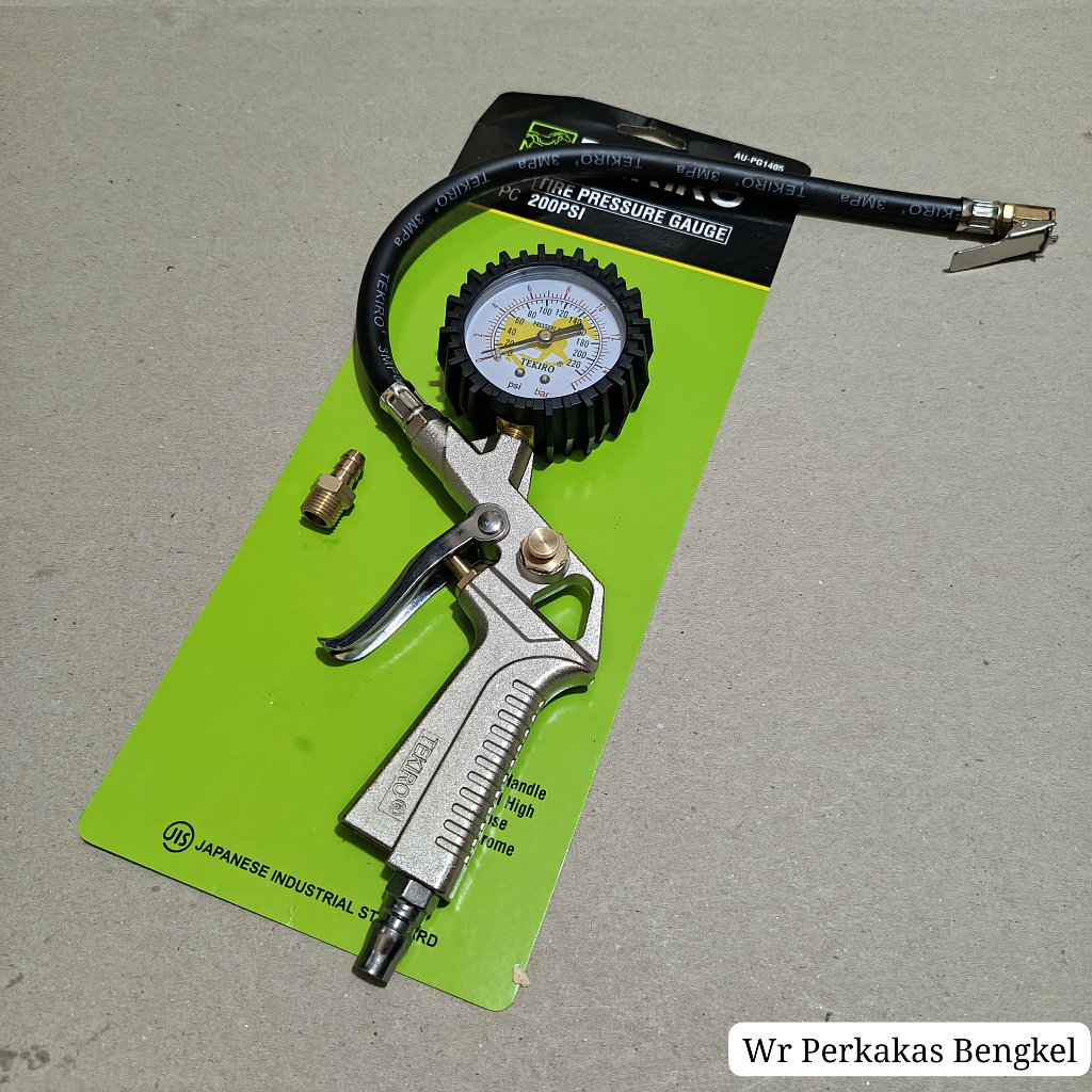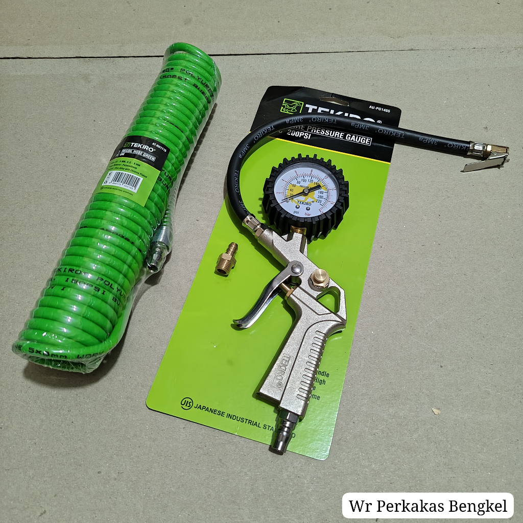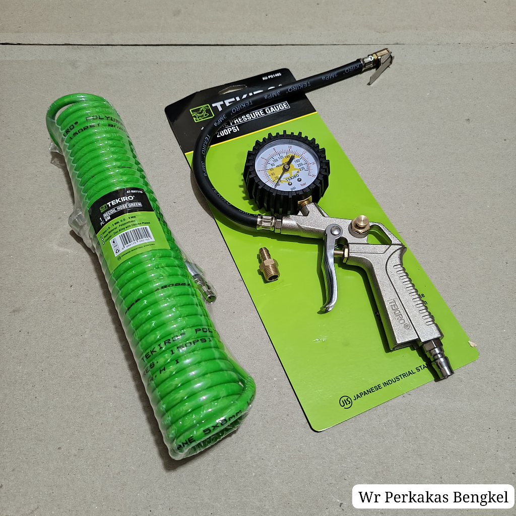 PAKET 2 SET TEKIRO Tire Pressure Gauge Tire Inflator Air Pressure Gun Isi Ukur Tekanan Angin 3 in 1 Tire + Selang kompresor angin tekiro spiral