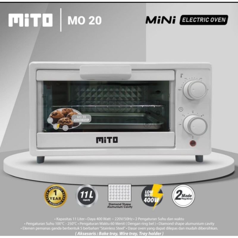 MITO Oven Listrik Mini MITO MO 20 Kapasitas 11 Liter Garansi Resmi 1 tahun