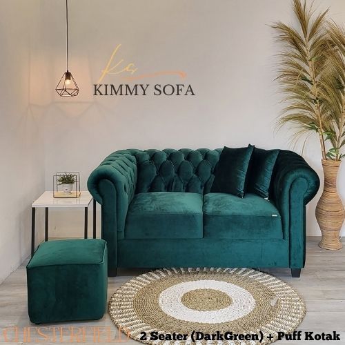 KIMMYSOFA Chesterfield Kancing Classic Bahan Velvet Ukuran 3 Seater 210cm