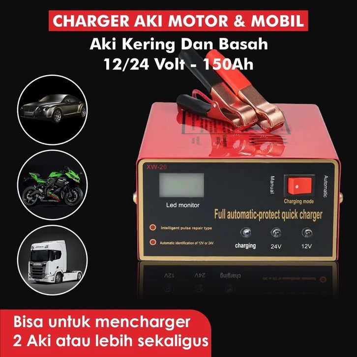 FREE ONGKIR Charger Aki Motor Mobil 1500A Otomatis Accu Kering Dan Basah Lead Acid Battery Charger Auto Charger Aki