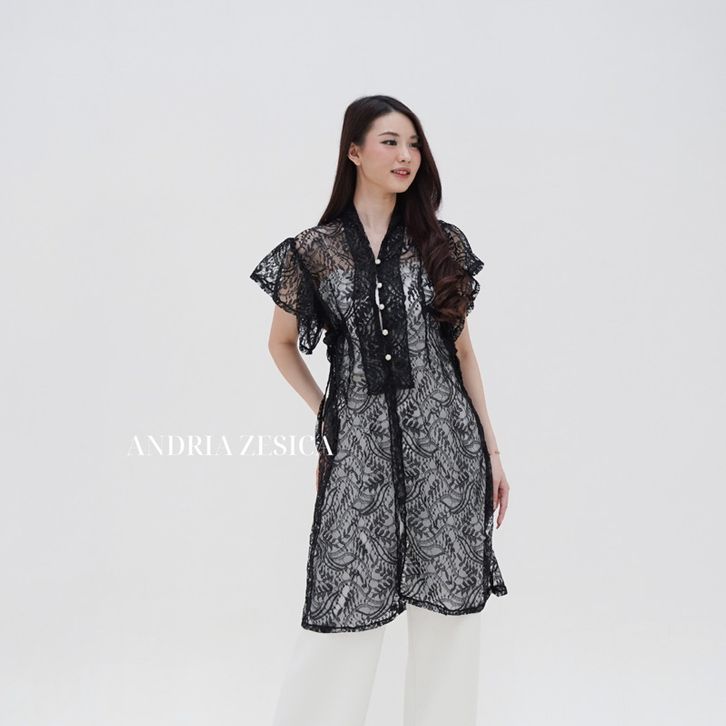 Janavi Outer Brokat Cantily Tunik Kebaya Atasan Outfit Baju Kondangan Wanita Modern Bridesmaid Simple Elegan Terbaru