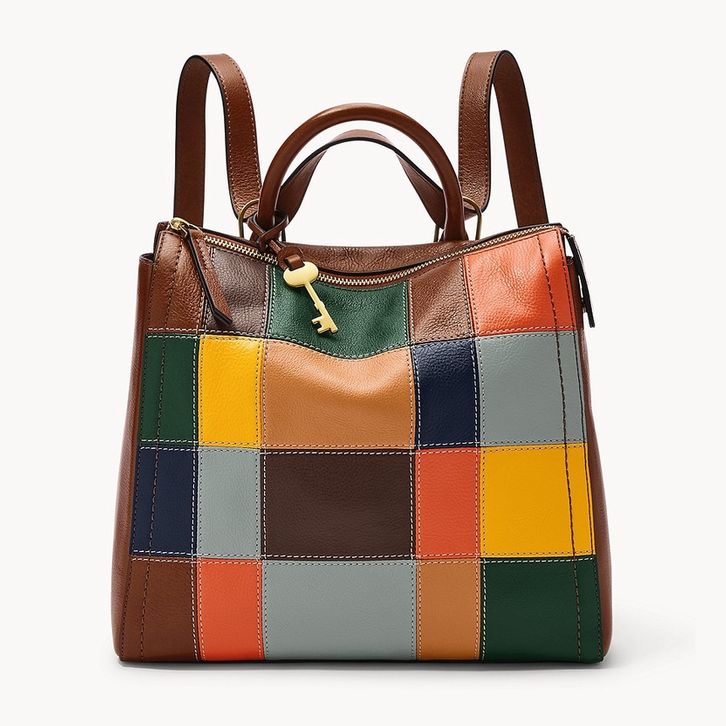 Tas Ransel Wanita Branded Fossill Parker Small Backpack Brown Patchwork Original