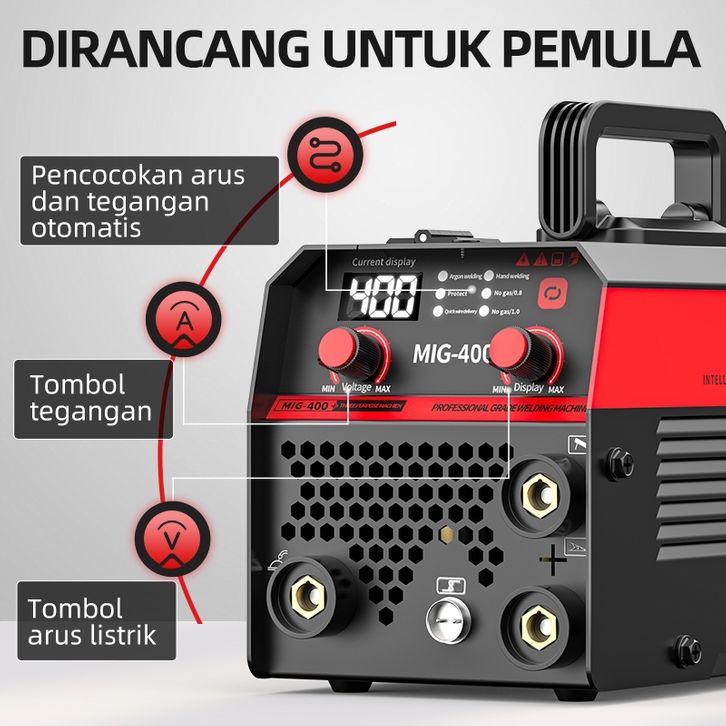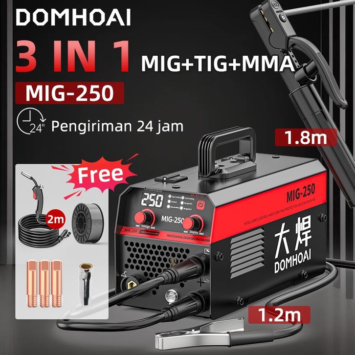 DOMHOAI Mesin Las Mig-250 3IN1 Las Listrik Profesional Inverter Mesin Las Tampilan Digital Definisi Tinggi