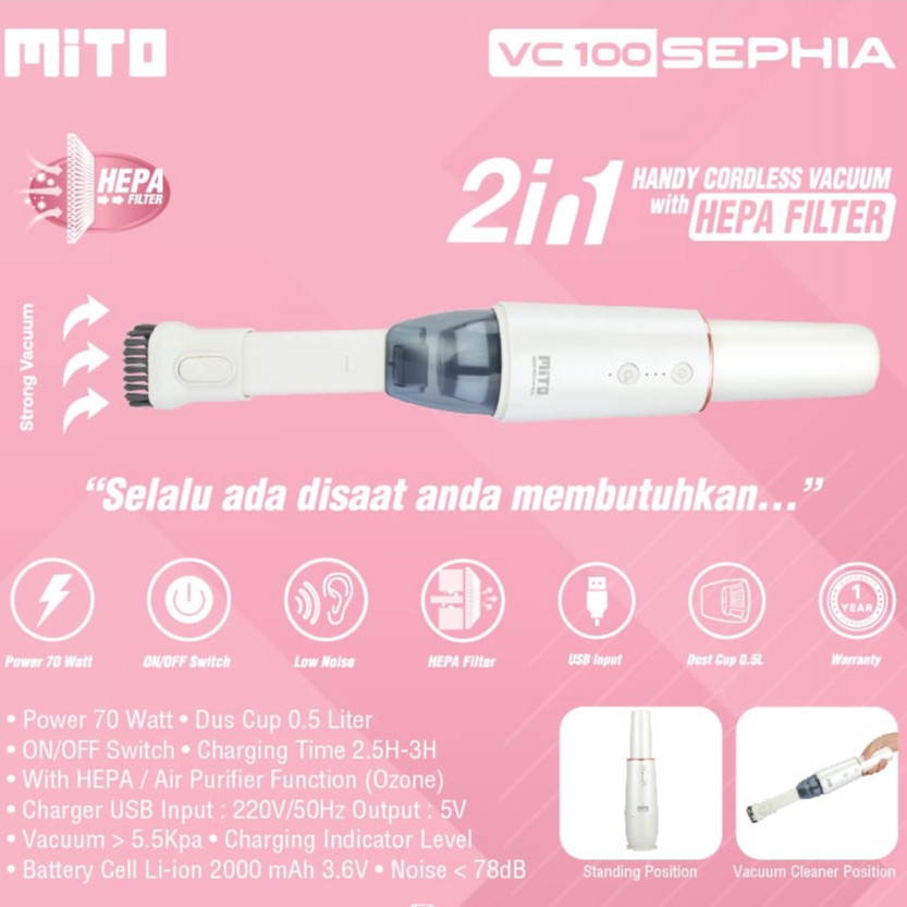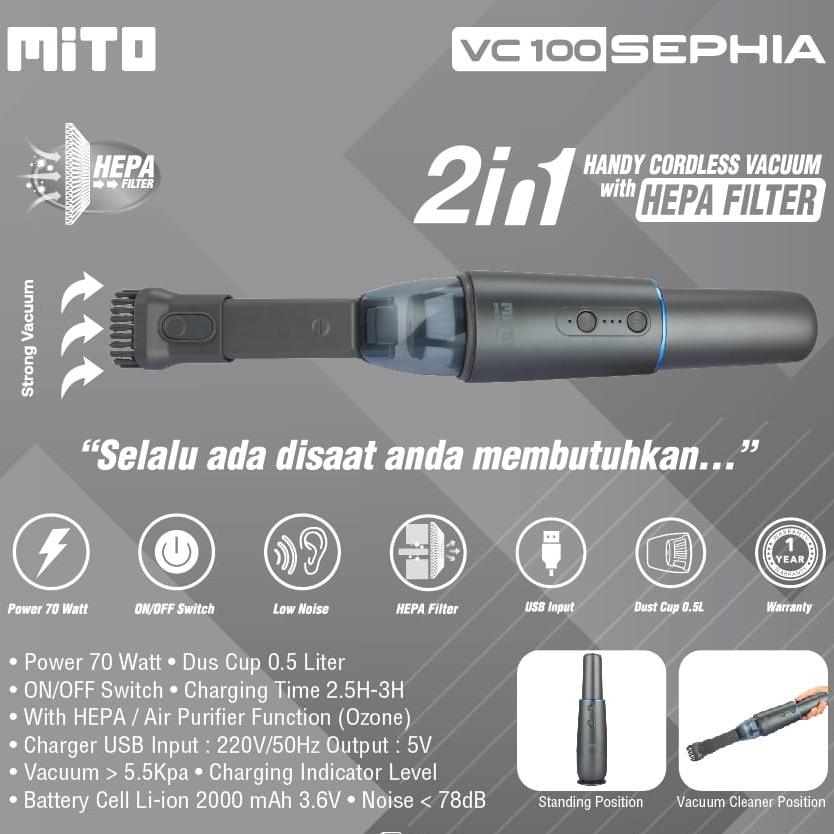 MITO Vacuum Cleaner Wireless VC100 Sephia Dengan Hepa Filter GARANSI RESMI