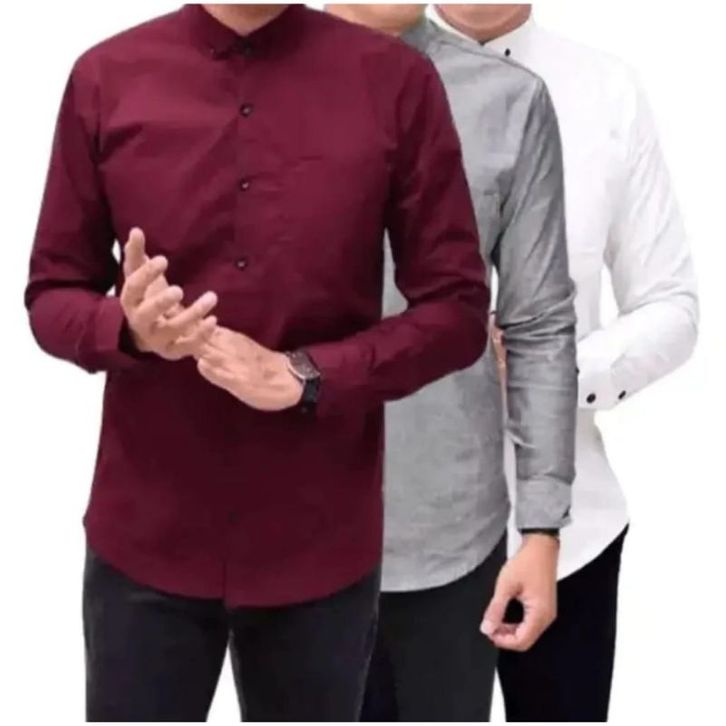 Paket Hemat 3 Pcs Kemeja Pria Lengan Panjang Hem Putih Hitam Polos Jumbo Formal Kerja Kantoran Baju Polos Casual Distro