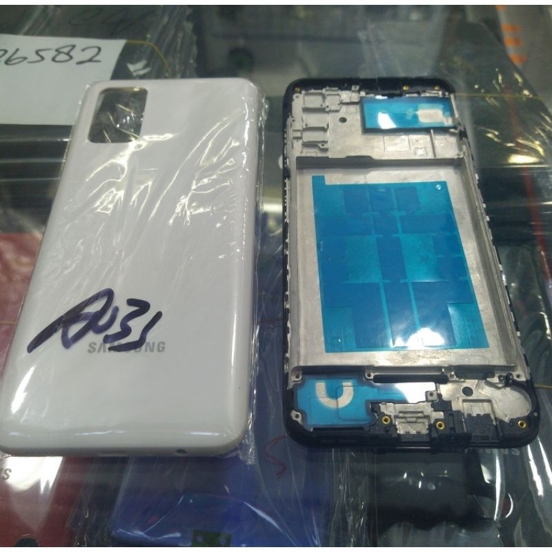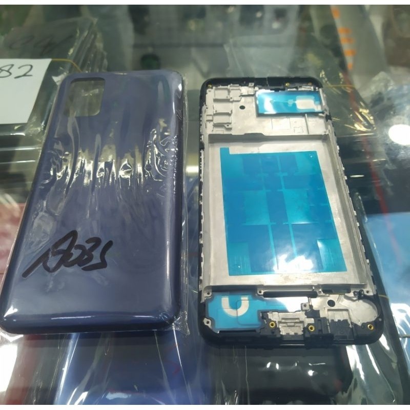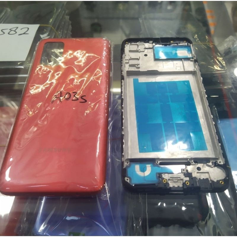 Cessing Kesing hausing Fullset Frame lcd Samsung A03S Backdor tutup belakang + Frame Tulang tengah tatakan mesin