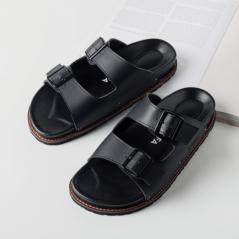 KENFA - NIVE PLATER SANDAL FORMAL CASUAL PRIA WANITA KULIT SLIDE SLOP DISTRO HITAM STYLIST