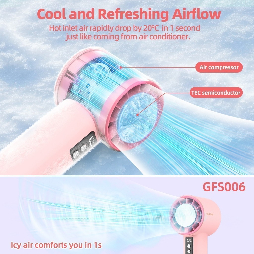 GOOJODOQ GFS006 High-Speed Kipas 100 Gear GFS006 Kompres Es untuk Mendinginkan Wind Kipas Angin Digital Display Adjustable Turbo Kipas Tangan