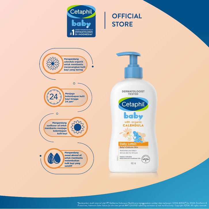 [Mall] Pelembab Bayi Cetaphil Baby with Organic Calendula Daily Lotion 400ml Oil Pelembap untuk Bayi Terbaru Original