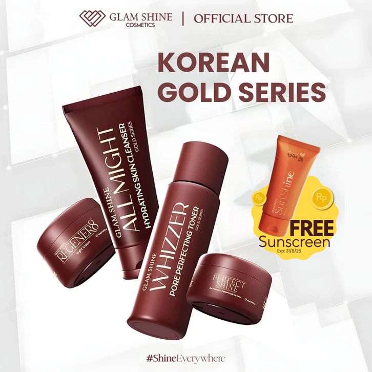 SKINCARE GLOWING BPOM - GLAM SHINE COSMETICS KOREAN GOLD SERIES / PAKET SKINCARE (TONER,FACIAL WASH, NIGHT&DAY CREAM)