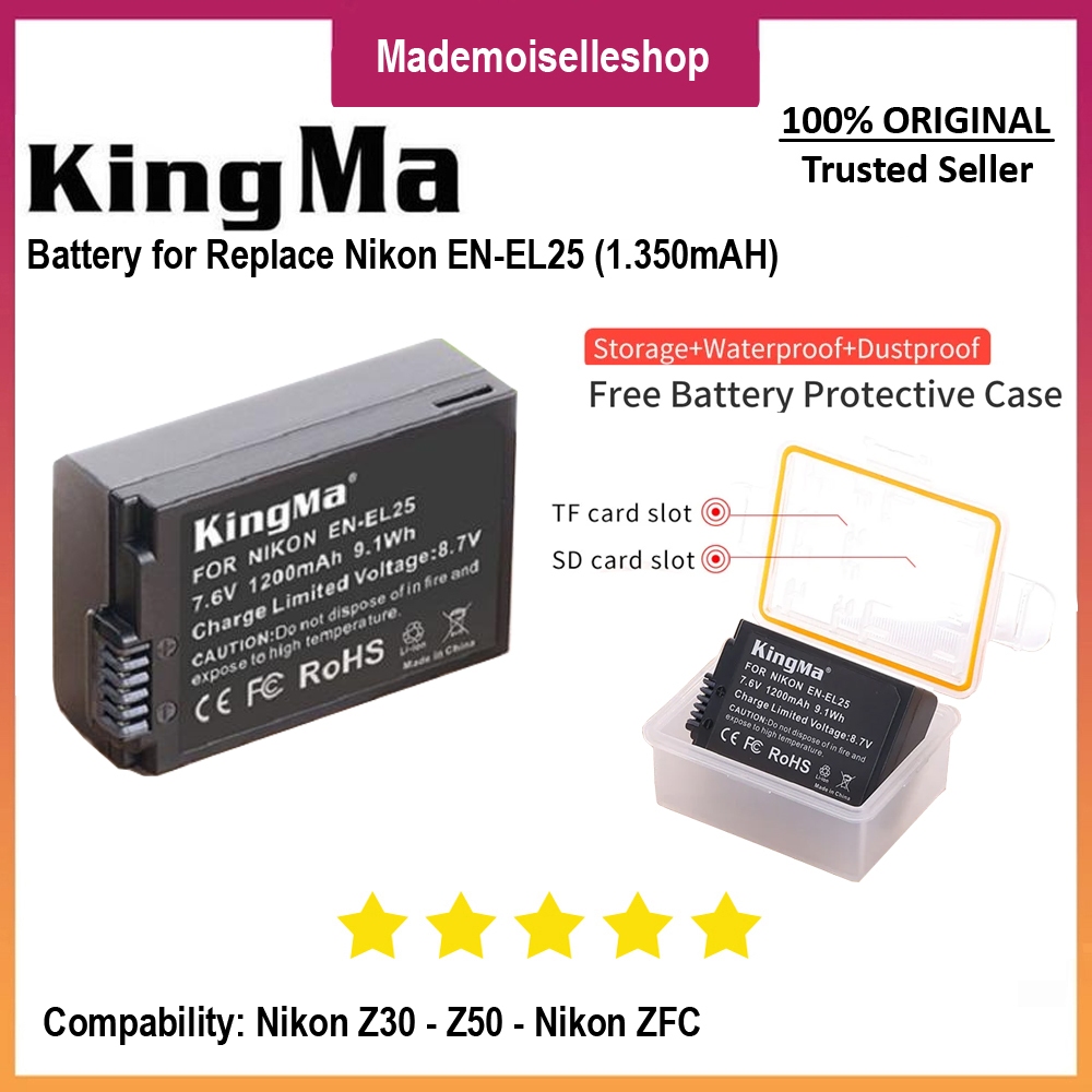 Kingma Battery Replacement for Nikon EN-EL25 - Baterai Kamera Nikon Z30 Z50 ZFC ENEL25 - 1350mAH - Free Battery Case