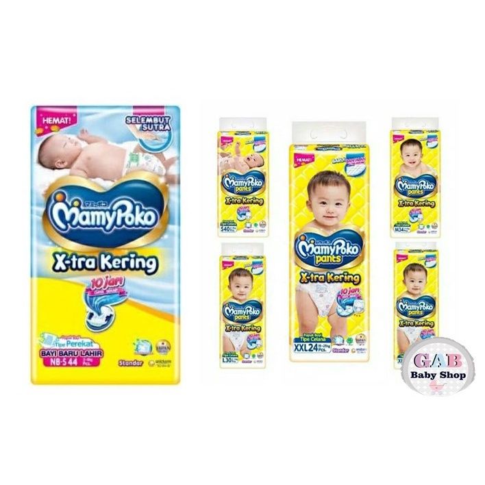 1 BAL A MamyPoko Xtra Kering NBS44 - S38 - M32 - L28 - XL26 / Popok Bayi