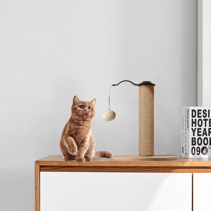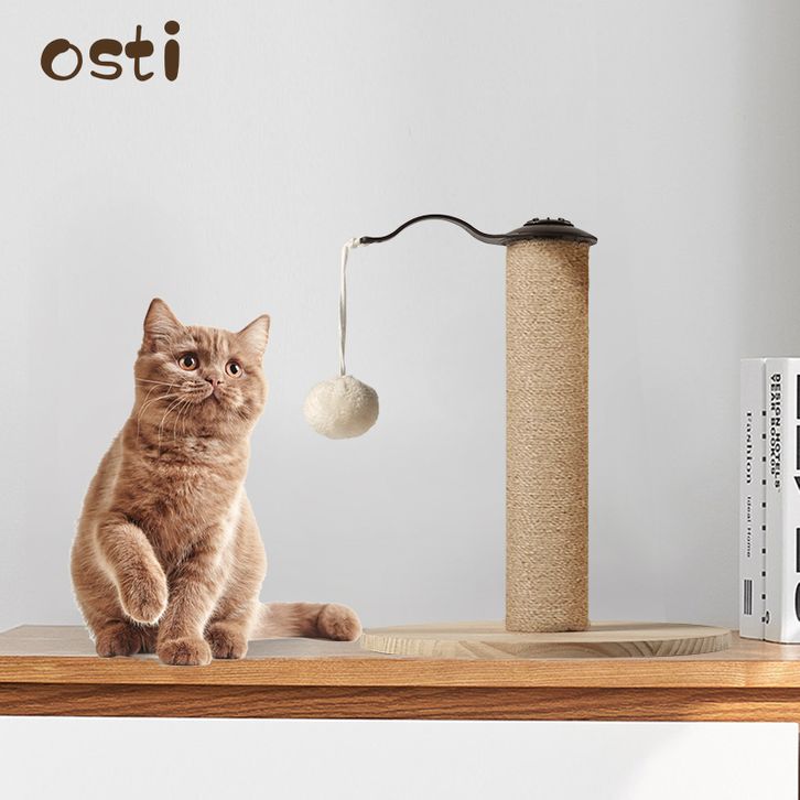 Osti Tiang Gores Kucing Kayu Solid dengan Mainan Bola Mainan Kucing Penggaruk Mainan Hewan Peliharaan Kayu