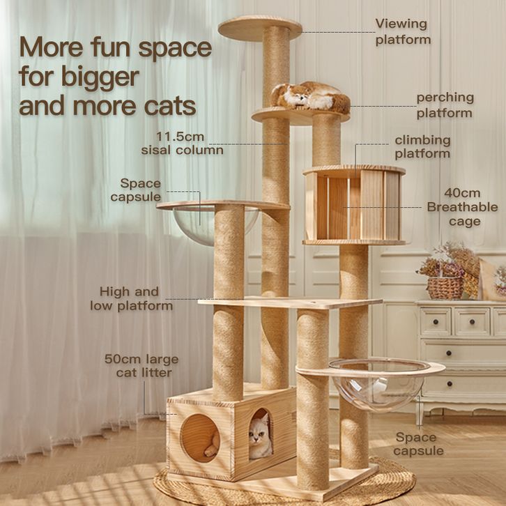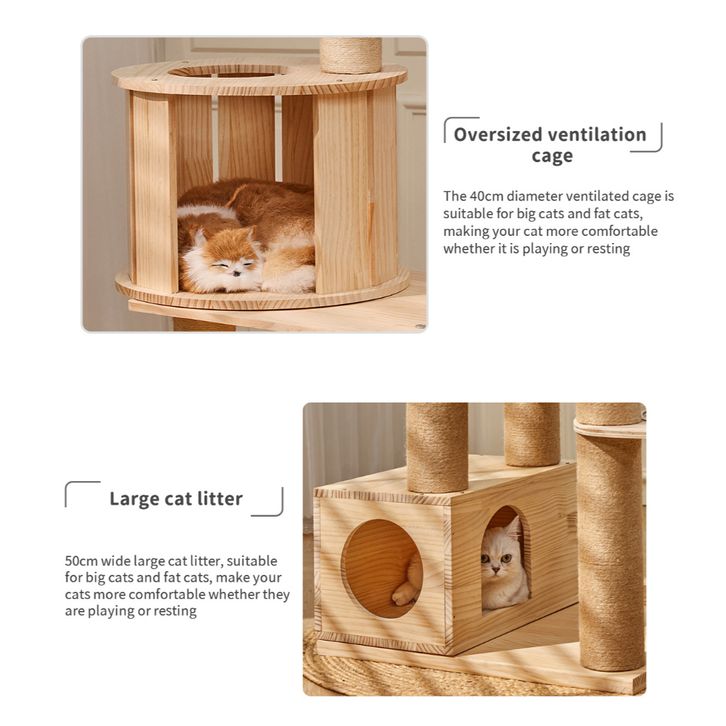Osti Pohon Kucing Kayu Pinus Kapsul R. Ganda Mewah untuk Beberapa Kucing Semua Dalam Satu Menara Kayu