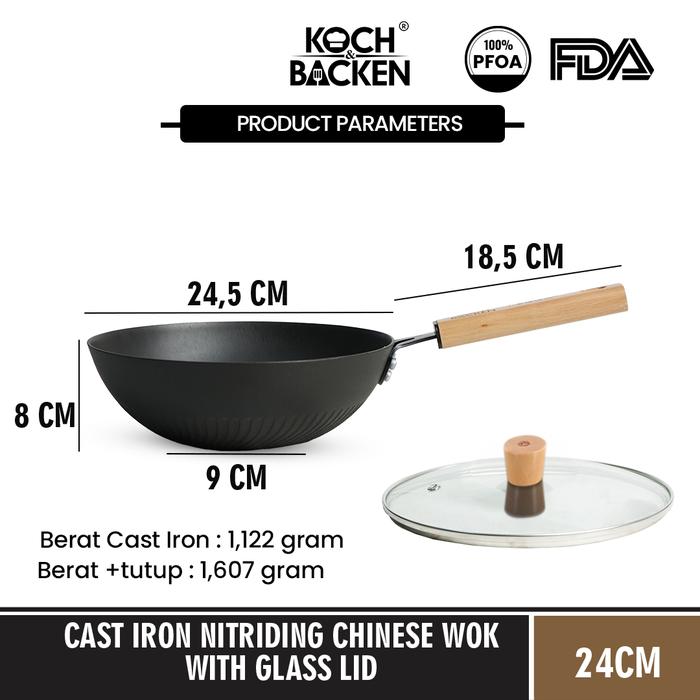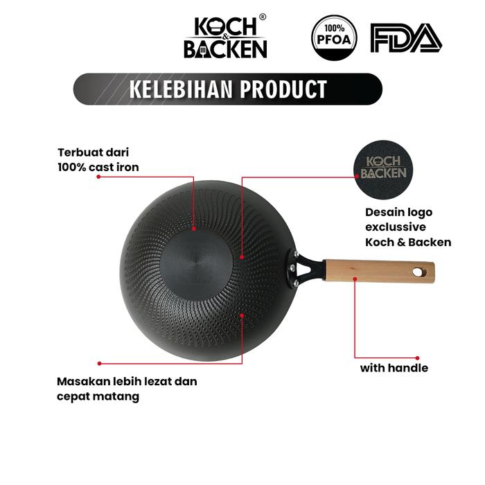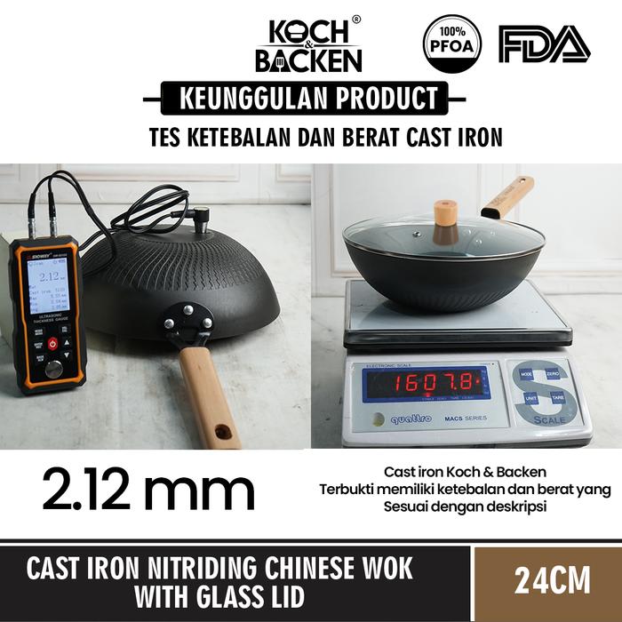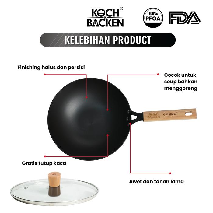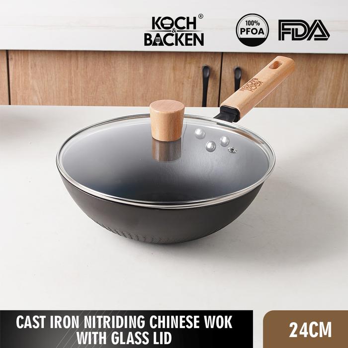Wajan Kuali Penggorengan Besi Cor Murni KOCH&BACKEN Cast Iron Nitriding Chinese Wok With Glass Lid terlaris