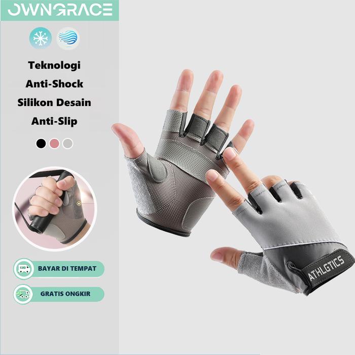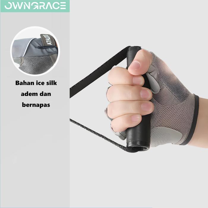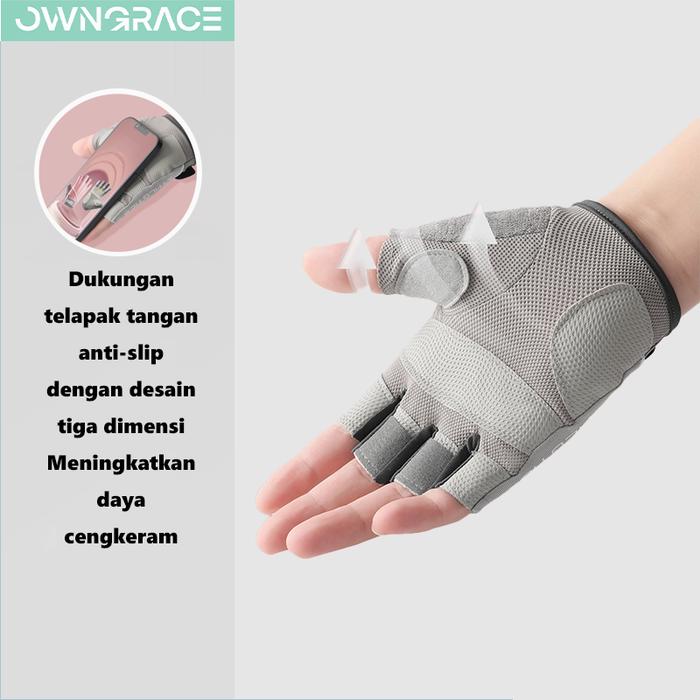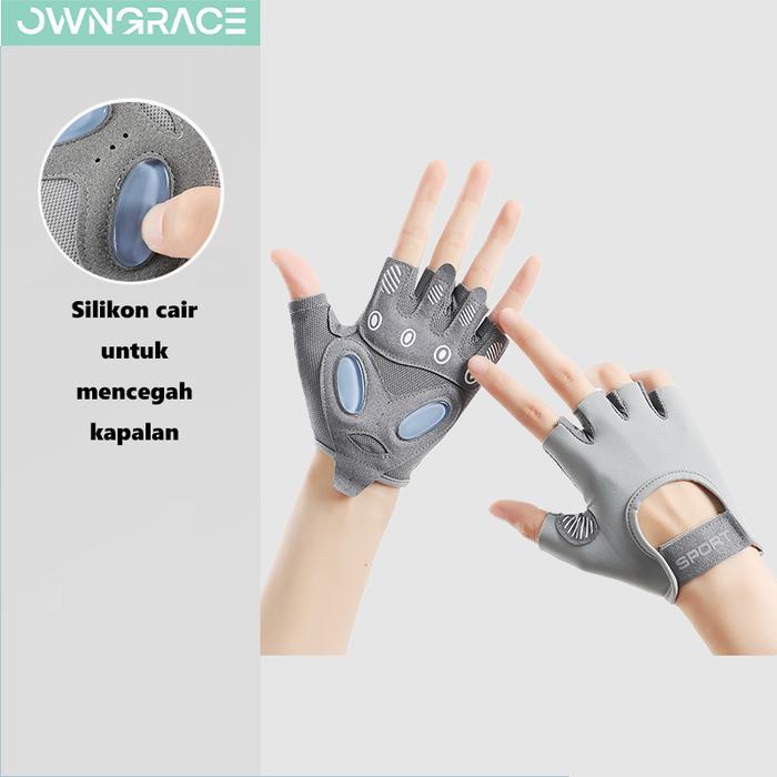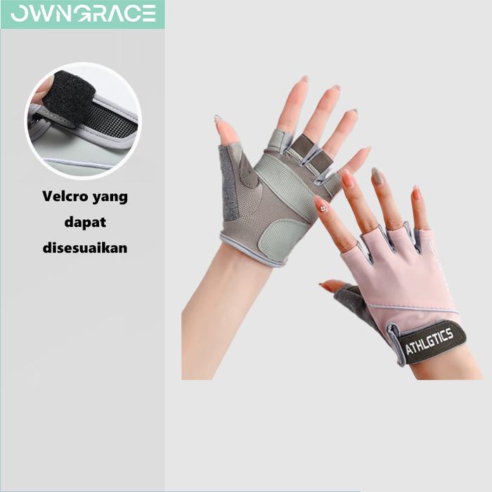 Owngrace-Sarung Tangan Olahraga Gym Sepeda Perlindungan Matahari non-slip Bernapas Half Finger Glove