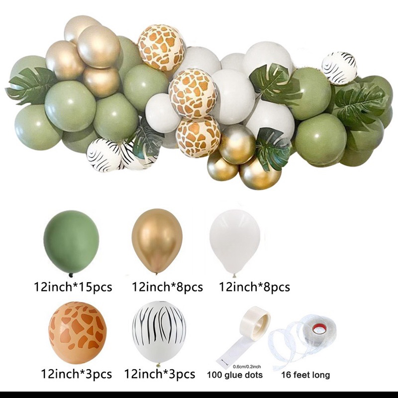 39 PCS BALON LATEKS BERTEMA HEWAN VINTAGE HIJAU MACAN TUTUL BERGARIS UNTUK PERAYAAN ULANG TAHUN ATAU PESTA PERNIKAHAN