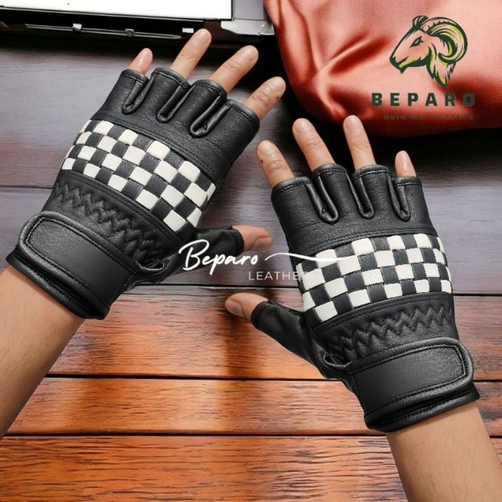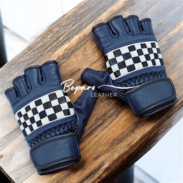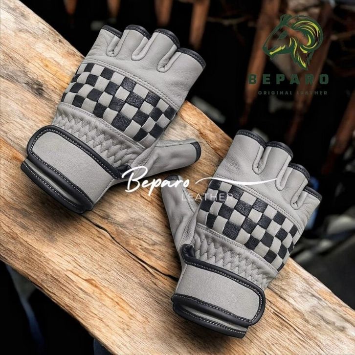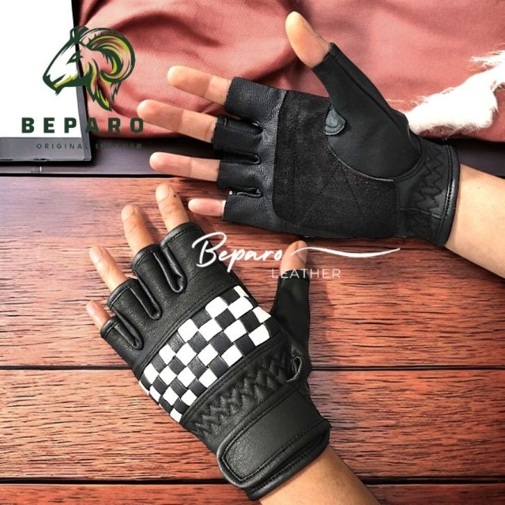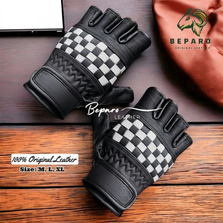 Sarung Tangan Motor Sarung Tangan Motor Retro Classic Checkerboard Kulit Asli Corak Catur