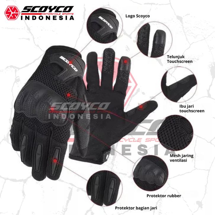 Sarung Tangan Motor Sarung Tangan Motor Mesh Breathable Touchscreen Musim Panas Scoyco MC58-2