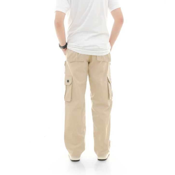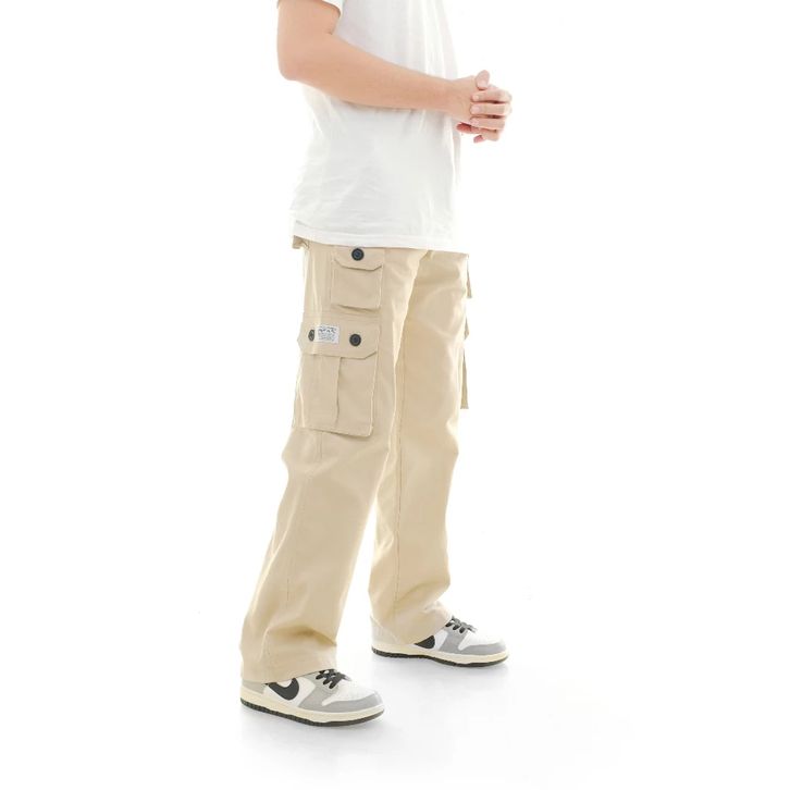 Qwertylife Long Pants Cargo Reguler Twill Pocket Cream
