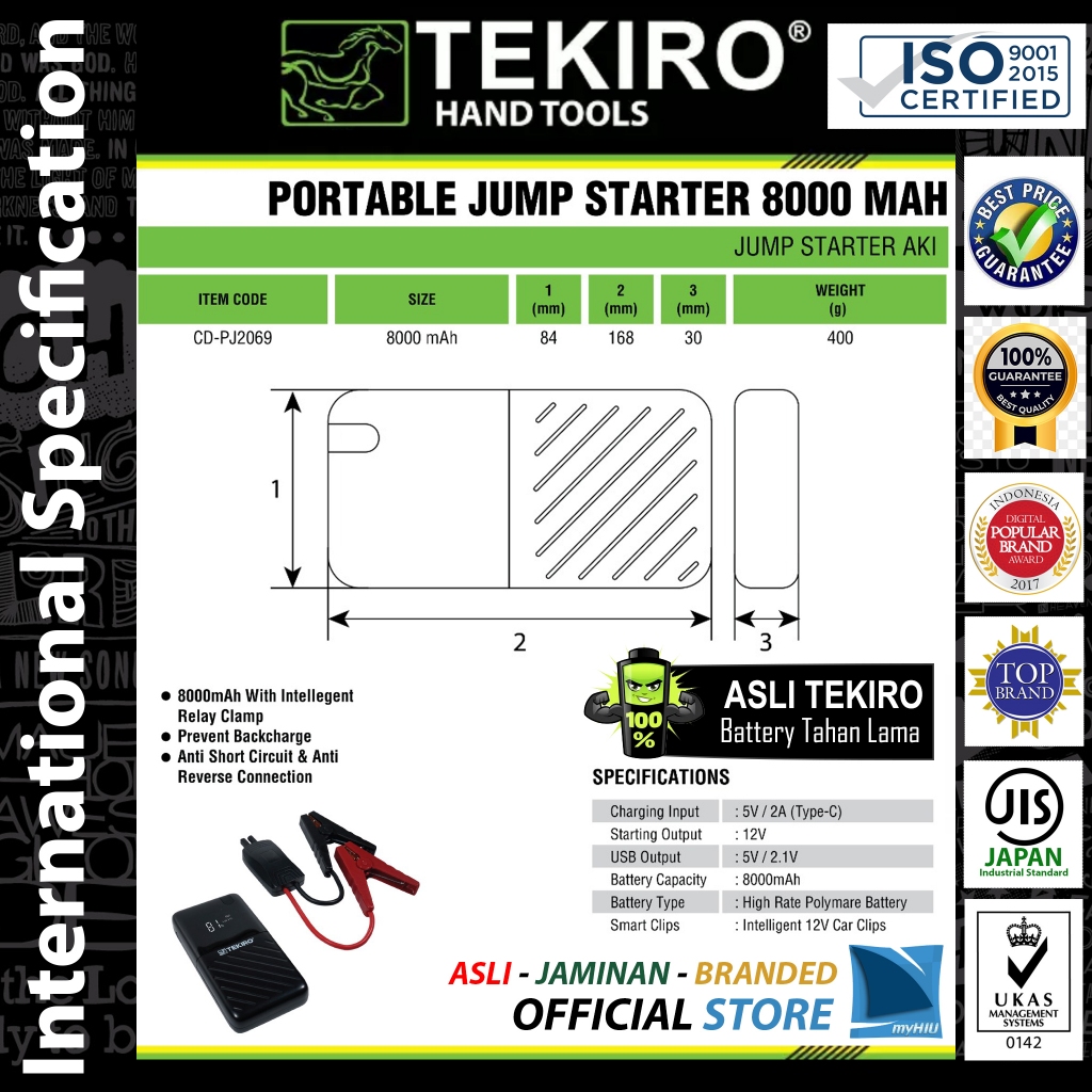 Alat Kejut Listrik Baterai Aki Mobil 12 Volt 8000 mAh - Portable Jump Starter Power Bank TEKIRO