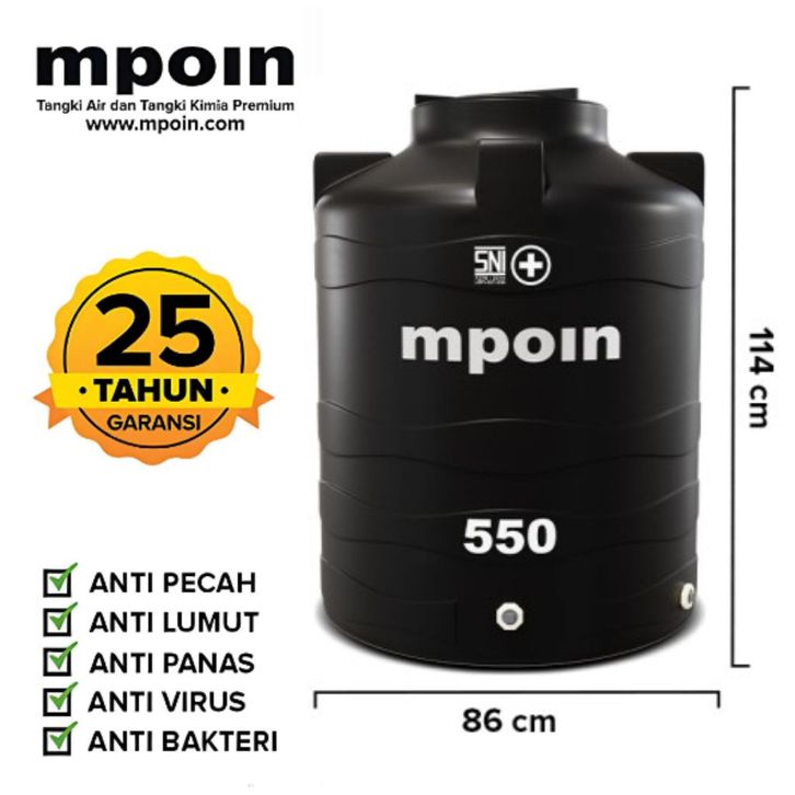 Mpoin - Tangki / Tandon / Toren Air / Water Tank W550 W 550 Liter Wave Reguler Hitam Anti Lumut Virus Bakteri