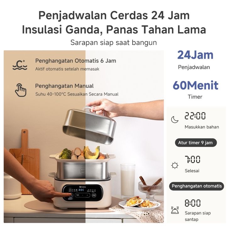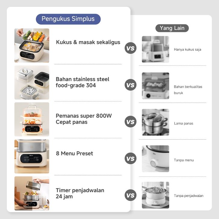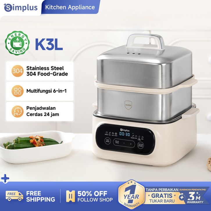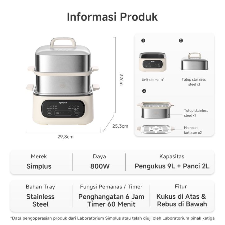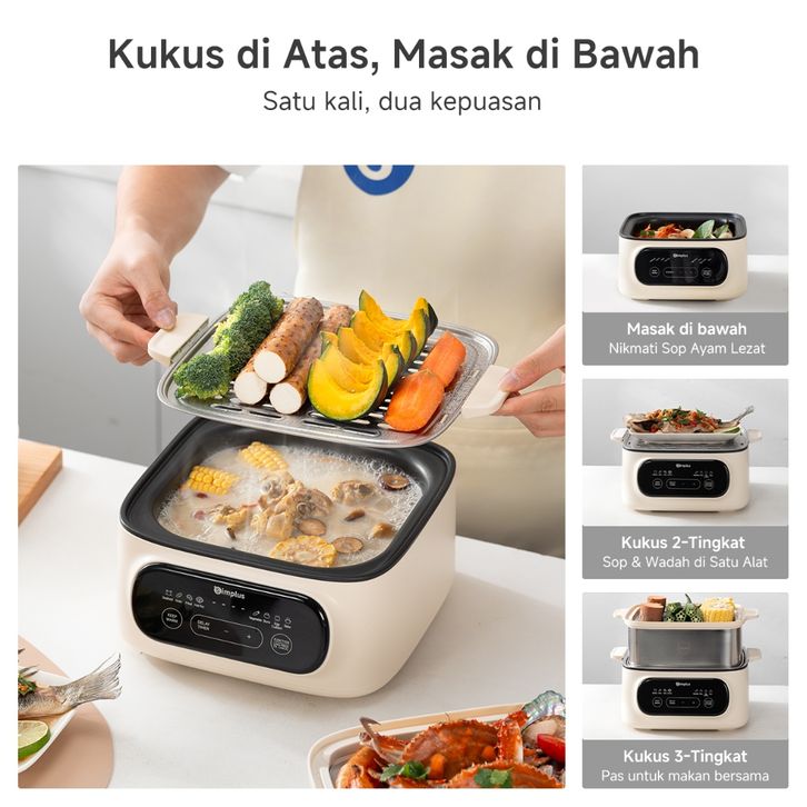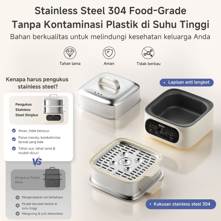 Kukusan Listrik Hotpot 2-IN-1 Steamer Kukusan Multifungsi Panci 11L 304 Stainless Steel