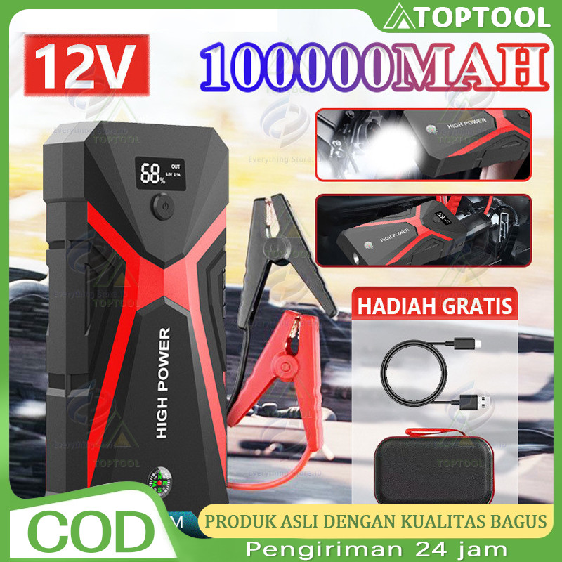 10000mAh Portable Jumper Aki Mobil dan Pompa Ban Power Bank Charger Aki Mobil Portable Mobil Battery Charger Car Pack Bo