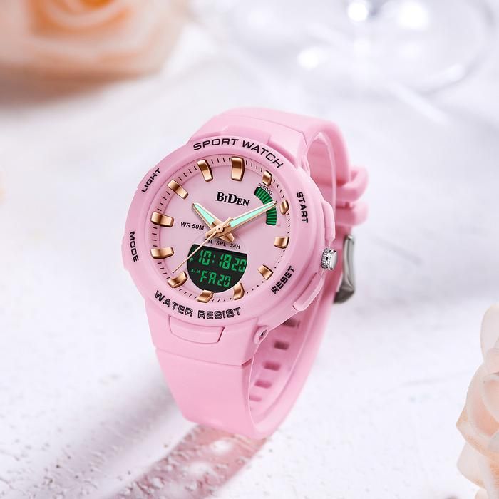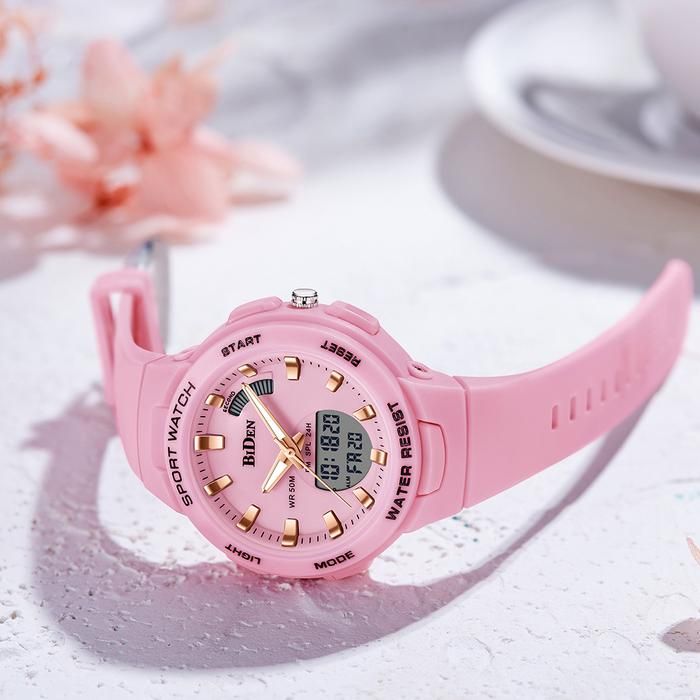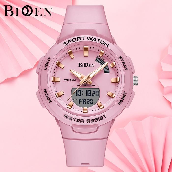 BIDEN Jam Tangan Wanita Digital & Analog Display Olahraga Silikon Jam Tangan Cewek