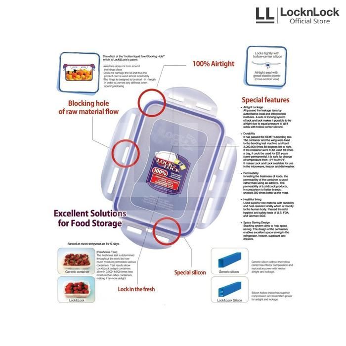 LocknLock - Kotak Makan Rectangular with Divider 470ML - HPL758R