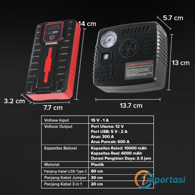 JXIANG POWER Jumper Aki Starter Powerbank 10000 mAh + Pompa Ban with Port USB & Senter