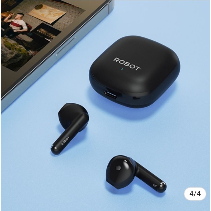 HENSET HANDSET T60 ROBOT TWS AIRBUDS T60 TERSEDIA WARNA BLACK WHITE BLUE PURPLE HALF EAR WIRELESS BLUETOOTH