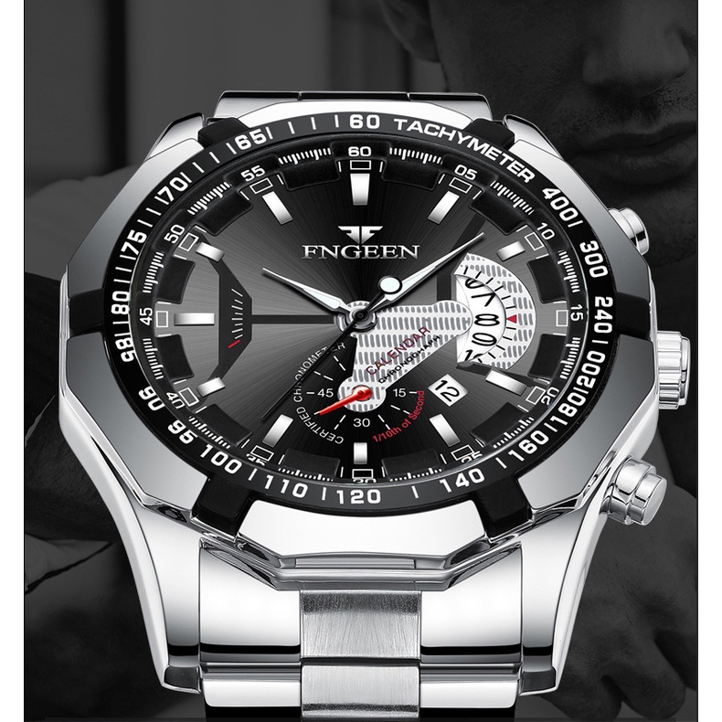 FNGEEN S001 JAM TANGAN PRIA LUXURY STAINLESS STEEL QUARTZ ORIGINAL TAHAN AIR WATCH + KOTAK GRATIS