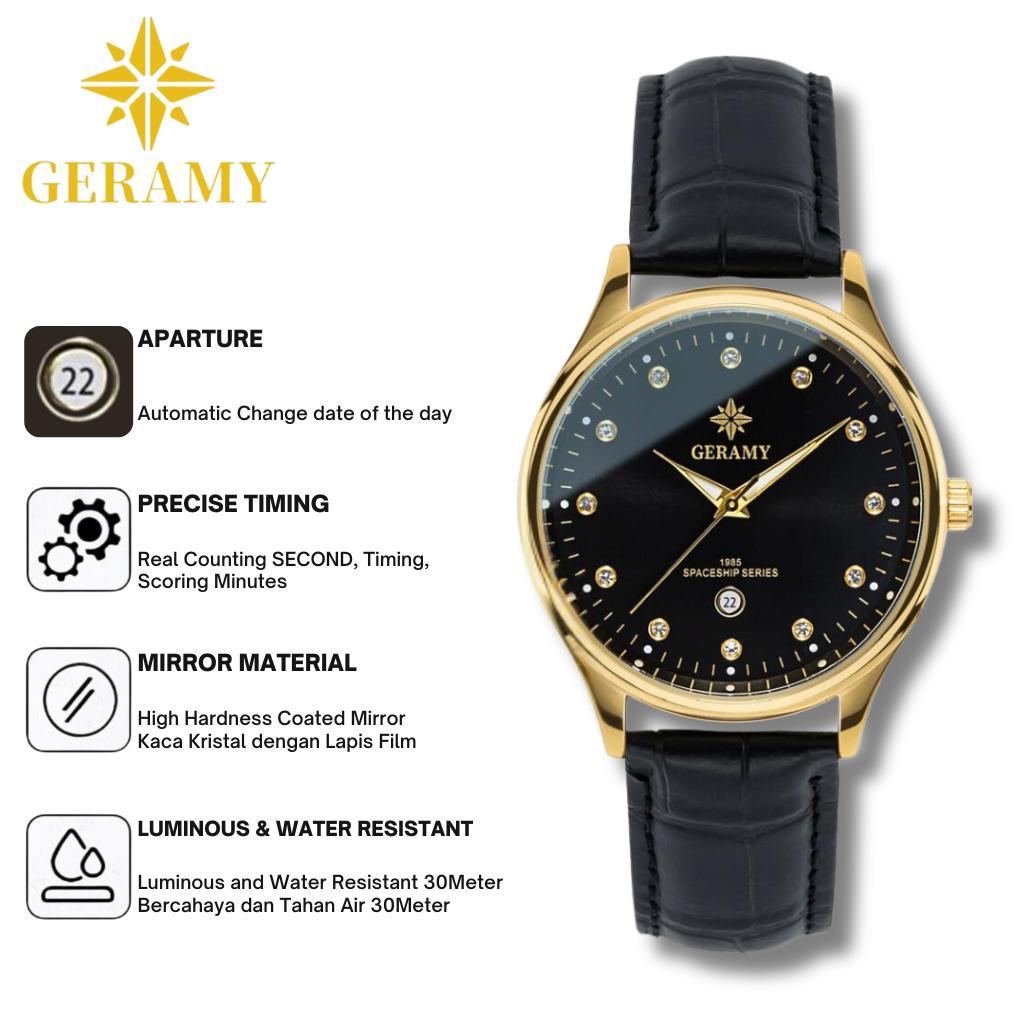 GERAMY L009 JAM TANGAN PRIA ORIGINAL ANTI AIR STAINLESS STEEL QUARTZ KALENDER KULIT LUMINOUS