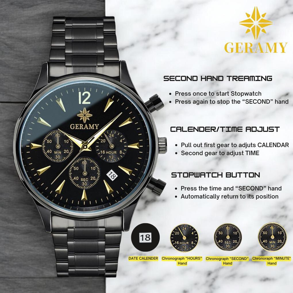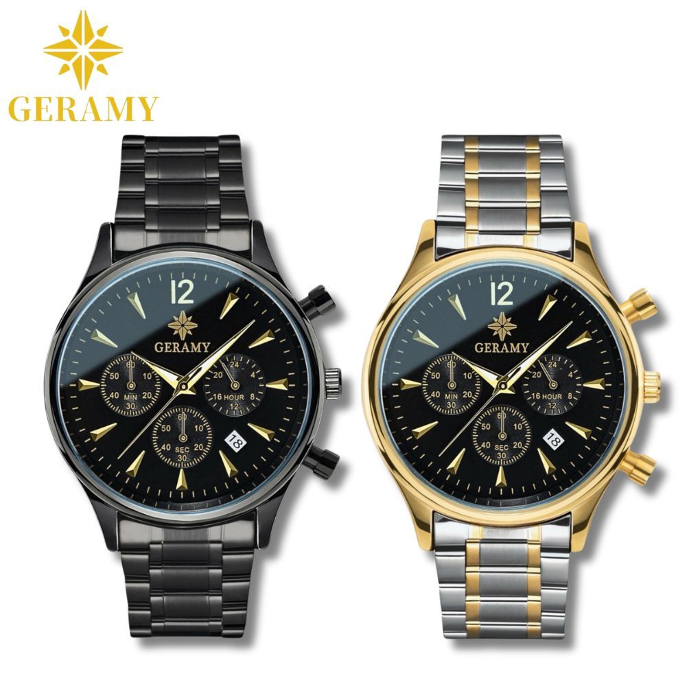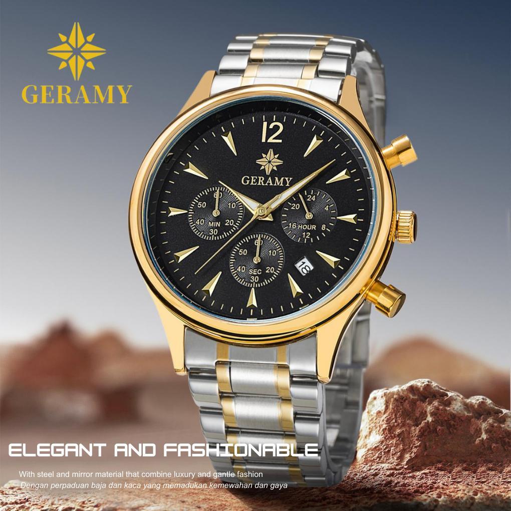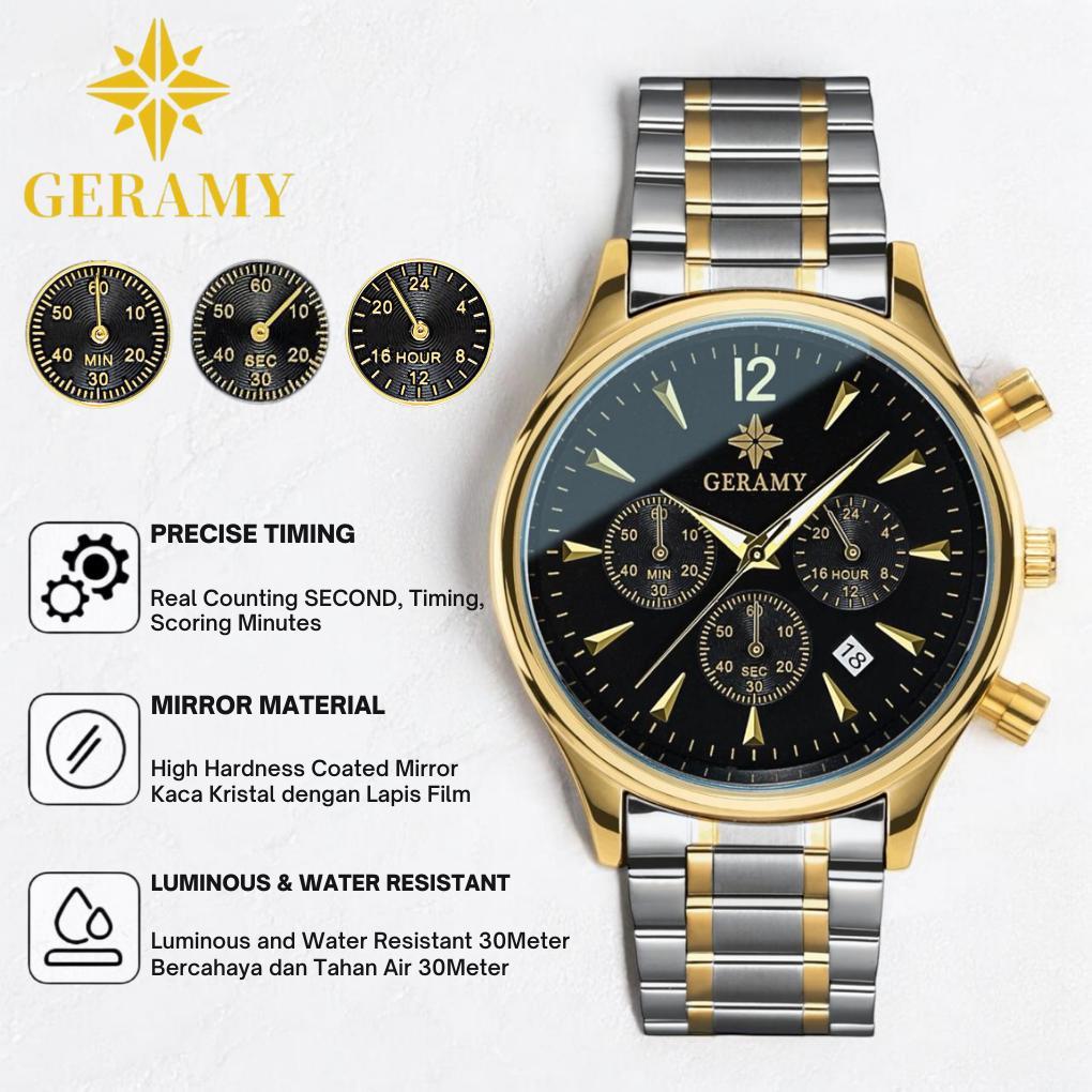 GERAMY S003 JAM TANGAN PRIA ORIGINAL ANTI AIR STAINLESS STEEL QUARTZ KALENDER MULTI FUNGSI CHRONOGRAPH