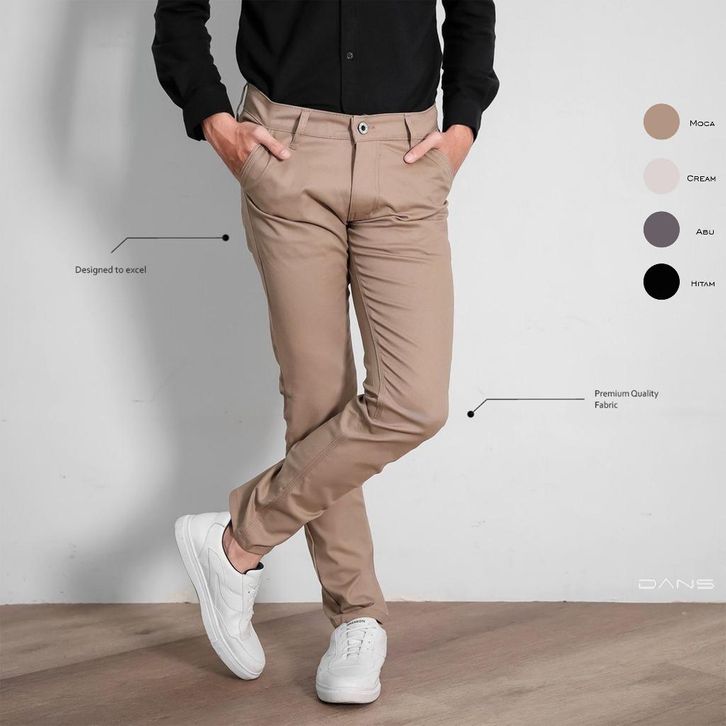 Celana Chino Panjang Pria Slimfit Kerjaharian Santai Casual Formal Hitam Abu Cream Mocca Size 27-38