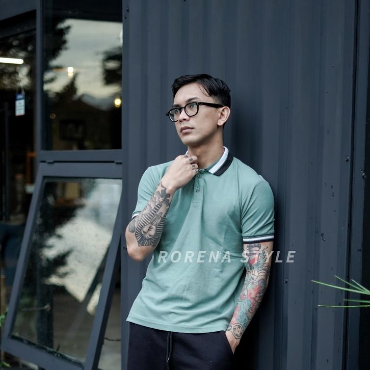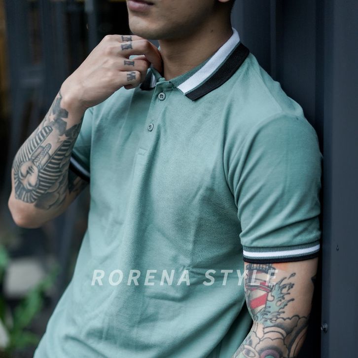Polo Rorena shirt Premium Bahan Pique Hexagon SageGreen Striped Collar